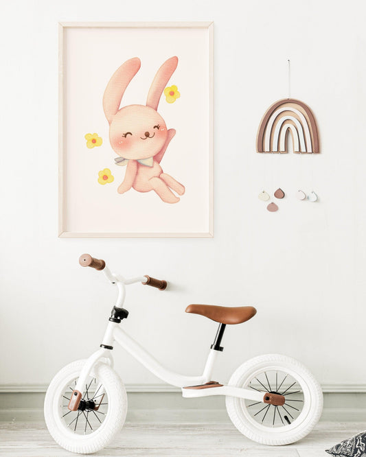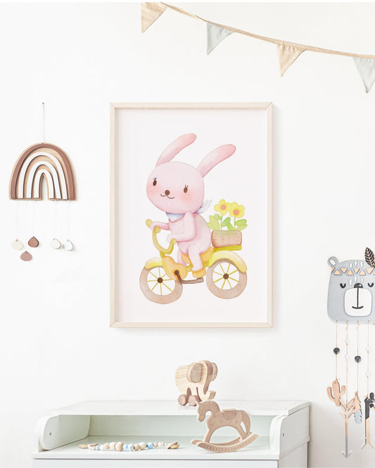 Poster per bambini da stampare – Coniglietto in Bicicletta con Fiori (Stampa Digitale)