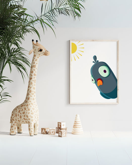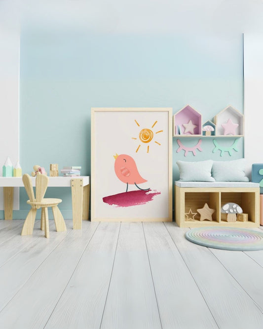 Poster per bambini da stampare – Uccellino Rosa al Sole (Stampa Digitale)