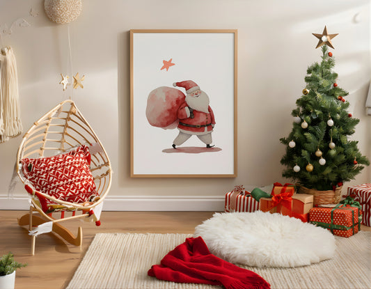 Poster per bambini da stampare Babbo Natale con Stella (Stampa Digitale)