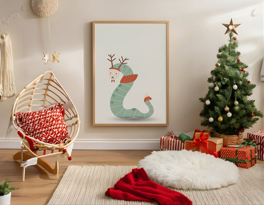 Poster per bambini da stampare con Serpente Renna (Stampa Digitale)
