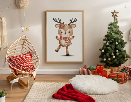 Poster per bambini da stampare con Renna e Agrifoglio (Stampa Digitale)