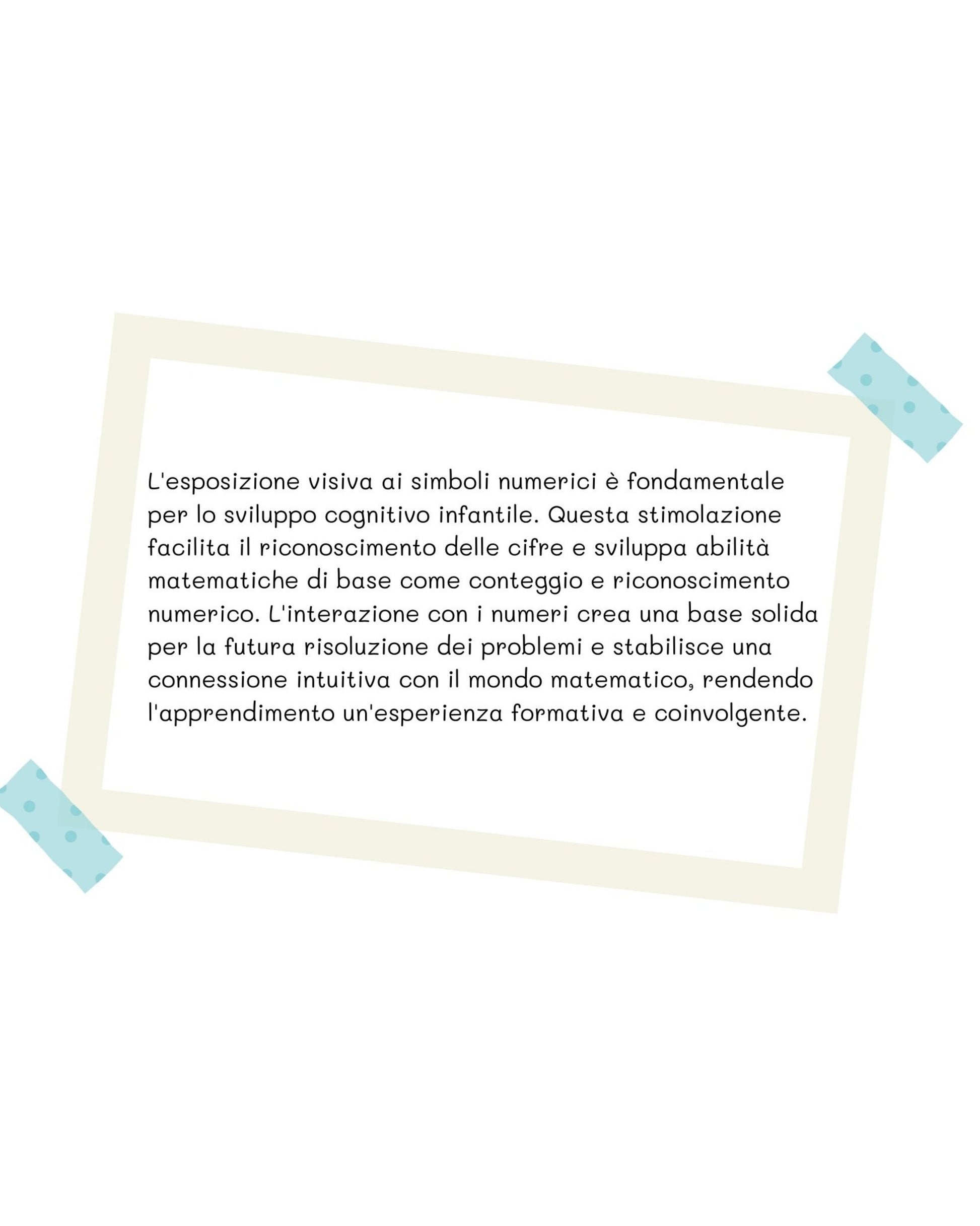 Grazie alla disposizione chiara e ordinata, i bambini imparano a riconoscere e memorizzare i numeri fino al 10, sviluppando capacità cognitive e logico-matematiche. Un tocco decorativo che arricchisce la stanza e stimola curiosità e immaginazione.
